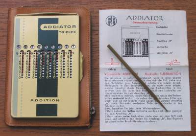 Serial-Number = D368245 ADDIATOR, Berlin / Germany (1965) B o d y S i z e ( W * D * H ) = 78 mm * 123 mm * 5 mm R E M A R K : Overflow/Underflow = RED MARKS with ARROWS impressum: ******************************************************************* © C.HAMANN http://public.beuth-hochschule.de/~hamann 02/12/06