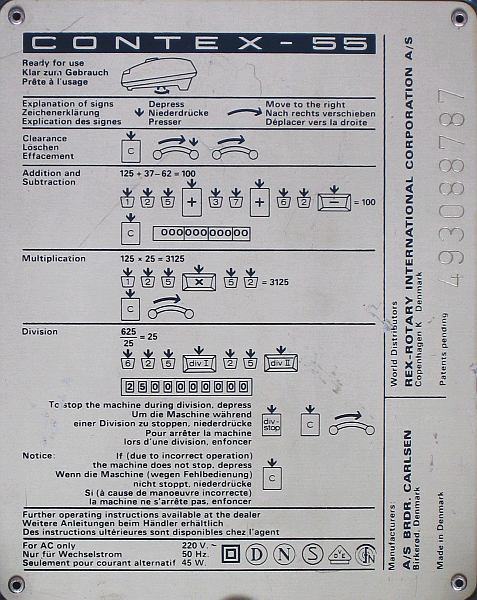 motor-driven multiplication and division. This CONTEX-55 has its own