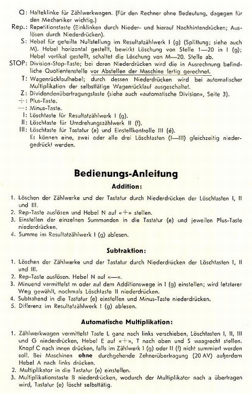 Bemerkung: Model 20A hat KEINE "DividendenUebertragungsTaste" (Z) !!!