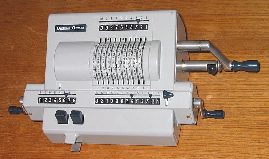 For addition (+) the crank is turned clockwise; for subtraction (-) the