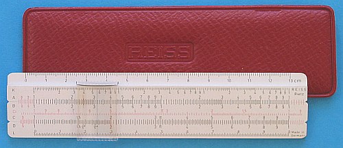 REISS, Bad Liebenwerda / (GDR) Germany (1970) *********************************************************** SCALES of the R E I S S (DECELITH) P O C K E T »RIETZ« =========================================================== Front Side [ inverse / RED ] Back Side =========================================================== ( 0 ... 13 cm Ruler ) K X3 A X2 ----------------------------------------------------------- B X2 S sin(0.1X) [CI] [1/X] C X T tan(0.1X) ----------------------------------------------------------- D X L lgX Historical Remarks ... The slide rule came in a red plastic case. The print on the back side of the slide rule says: » Elektrotechnik / EXPORT - IMPORT « impressum: *********************************************************** © C.HAMANN http://public.BHT-Berlin.de/hamann 10/23/07 |