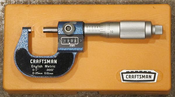 TECHNICAL DATA of the Mechanical "HYBRID" MICROMETER » CRAFTSMAN « -------------------------------------------------------------------- Range 0 - 25 mm / 0 - 1" SN = 9_38666 Made in Japan Unit of 0.01 mm / 0.0001" for SEARS-ROEBUCK CO. (1980) See Instruction Sheet ( Back / Front ) ... |