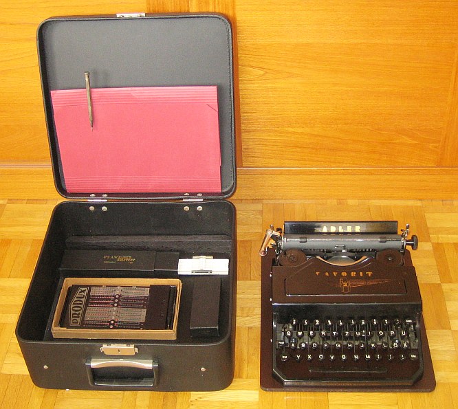 ADLER » FAVORIT 2 « " A TRAVELING-SALESMAN CASE " assembled & presented for the "Berlin-Brandenburger-Sammler-Treffen" ( = BBST ) All "necessities" together in a modified MUSIC-RECORD-BOX ... ![]() ![]() ADLER-Typewriter + FC-1/22-SlideRule + PRODUX-Addiator + Papers+Pen Back to the ADLER FAVORIT Main Page Back to the Typewriter Overview impressum: ************************************************************************** © C.HAMANN http://public.BHT-Berlin.de/hamann 1st April 2009 |